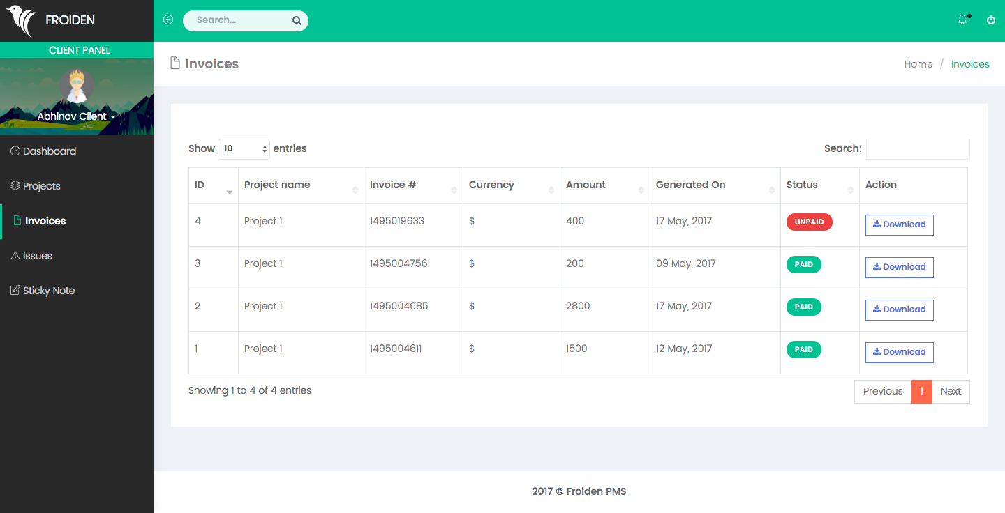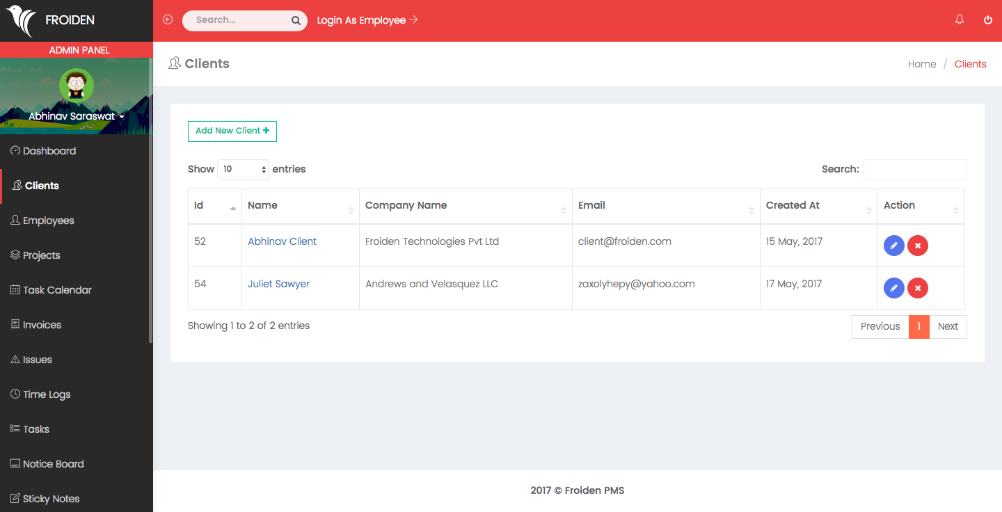 This section shows you the list of all your clients. You can see the details related to the client by click on the client name.