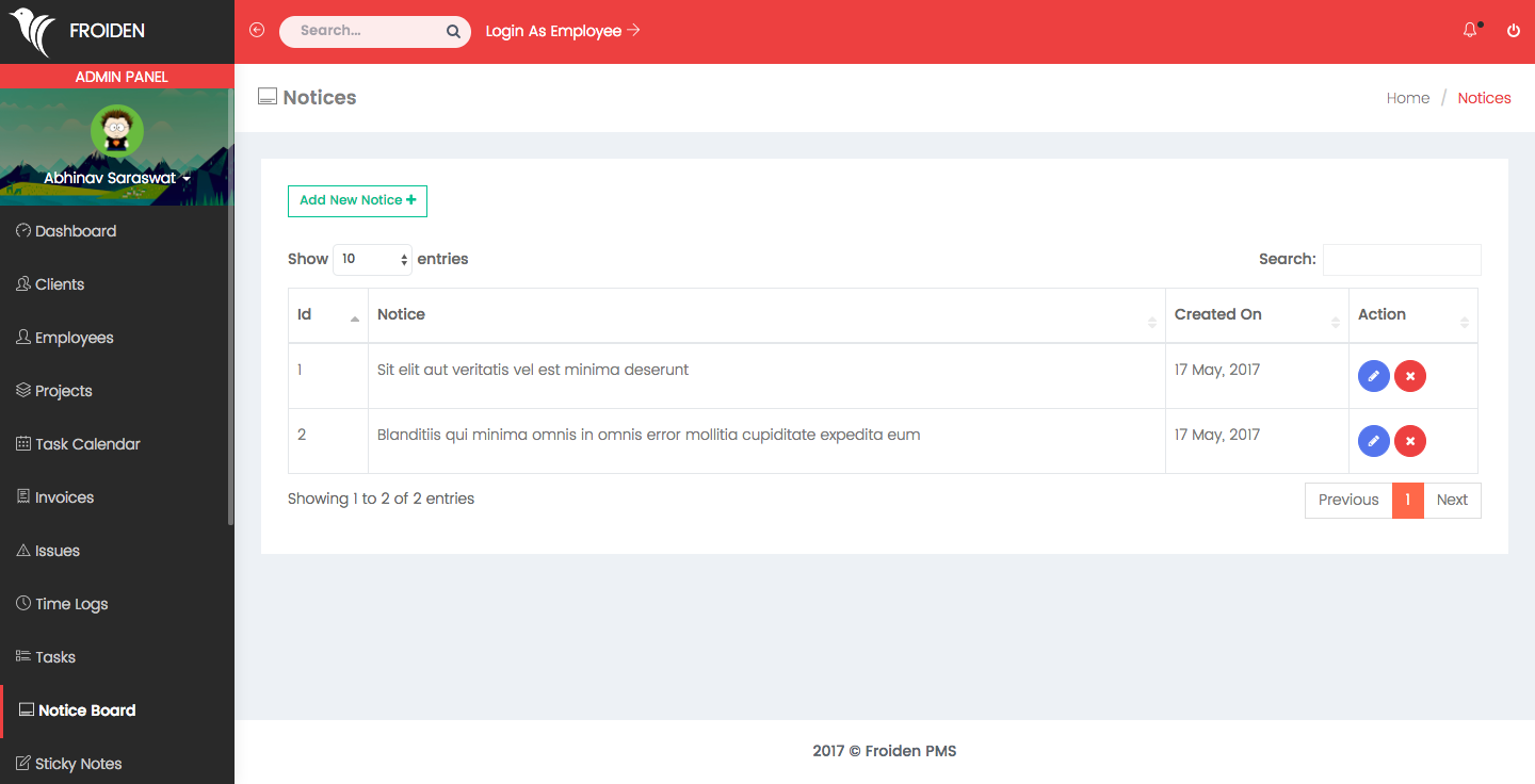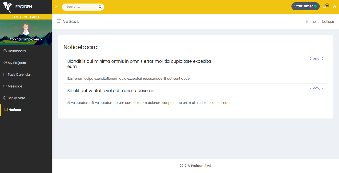 These are the notices which you can publish for your employees.