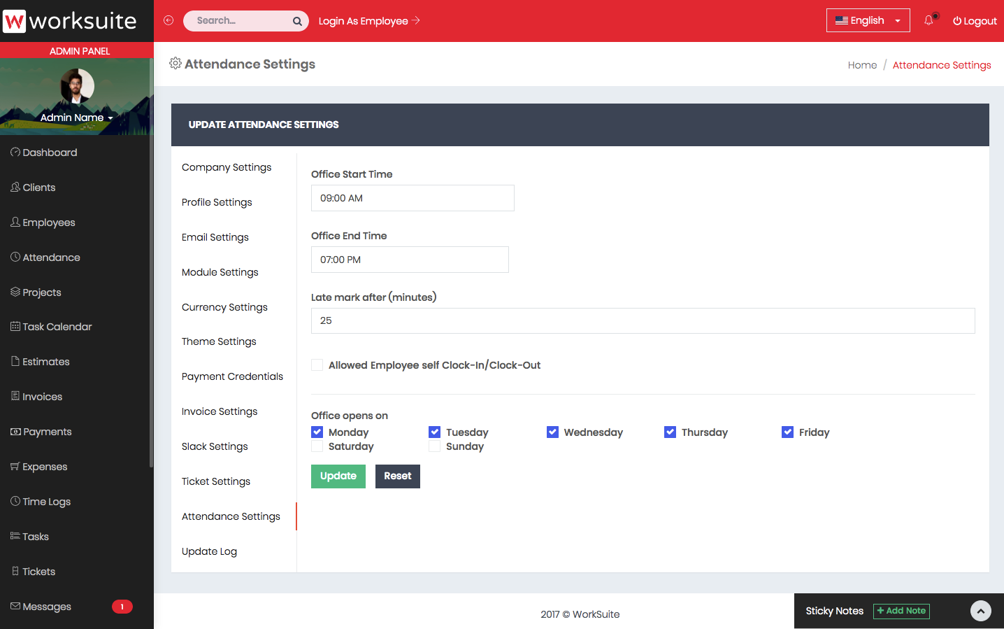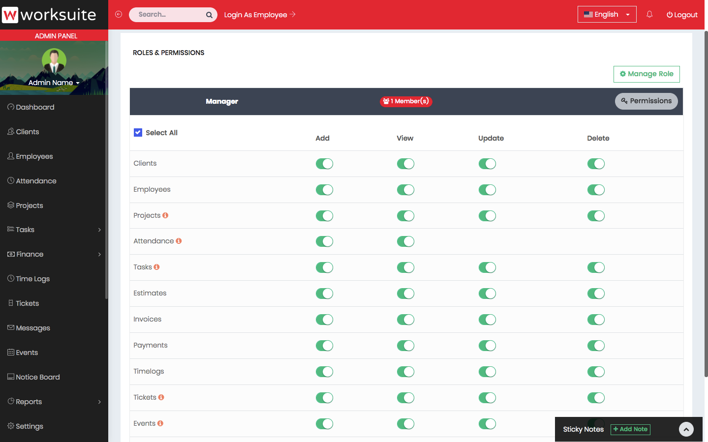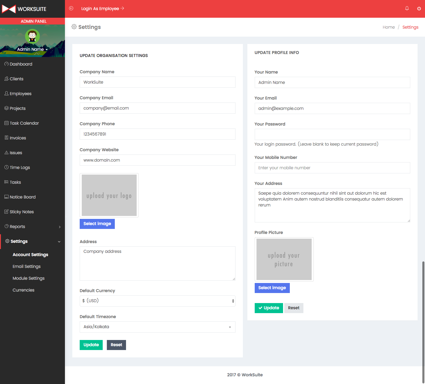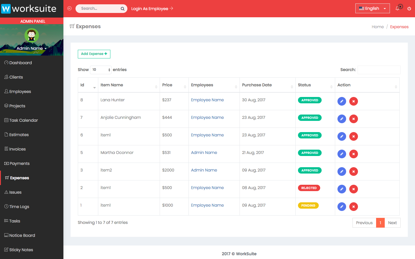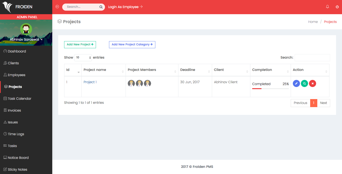 Admin dashboard shows important information about your projects, payments, clients and employees.