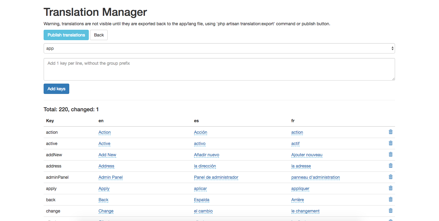 Now just click on the Publish translations button on top to apply the changes.