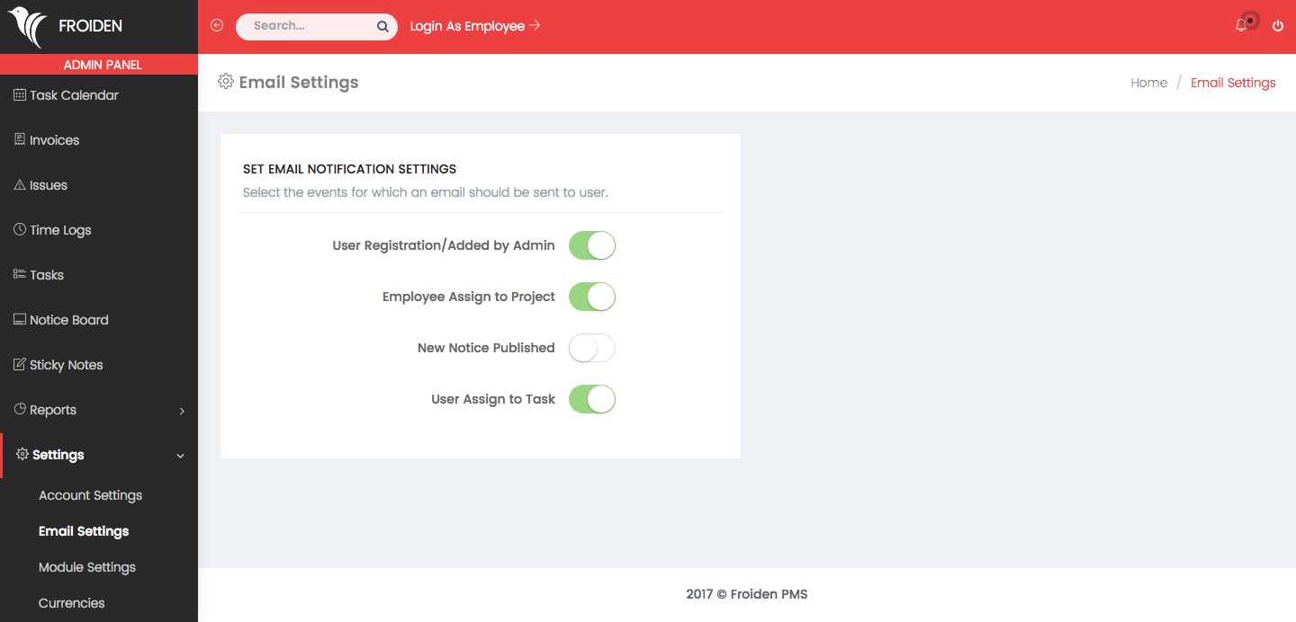 You can set your email preferences for your clients and employees.