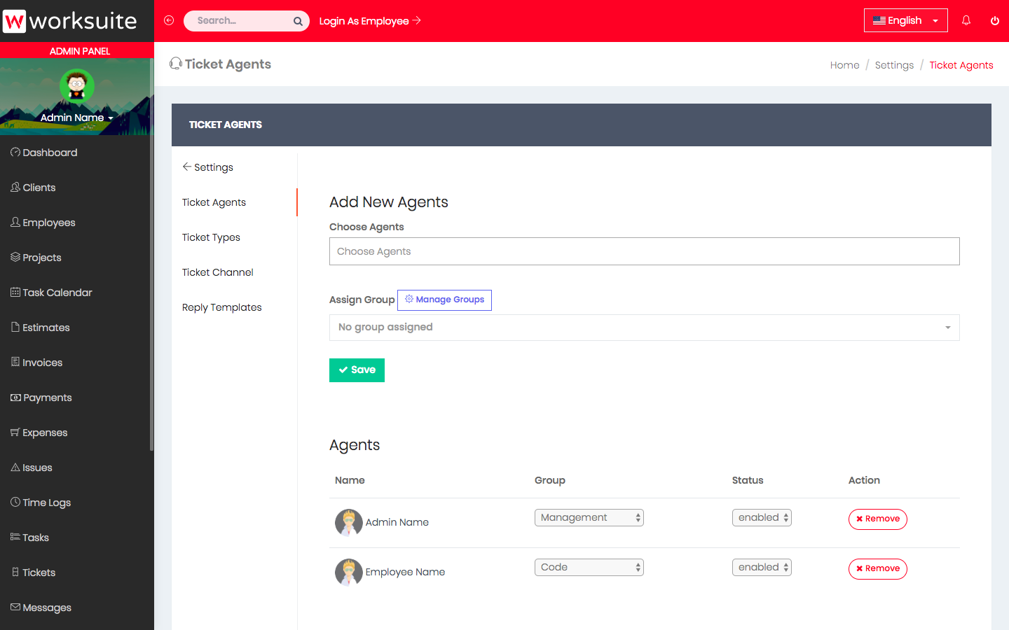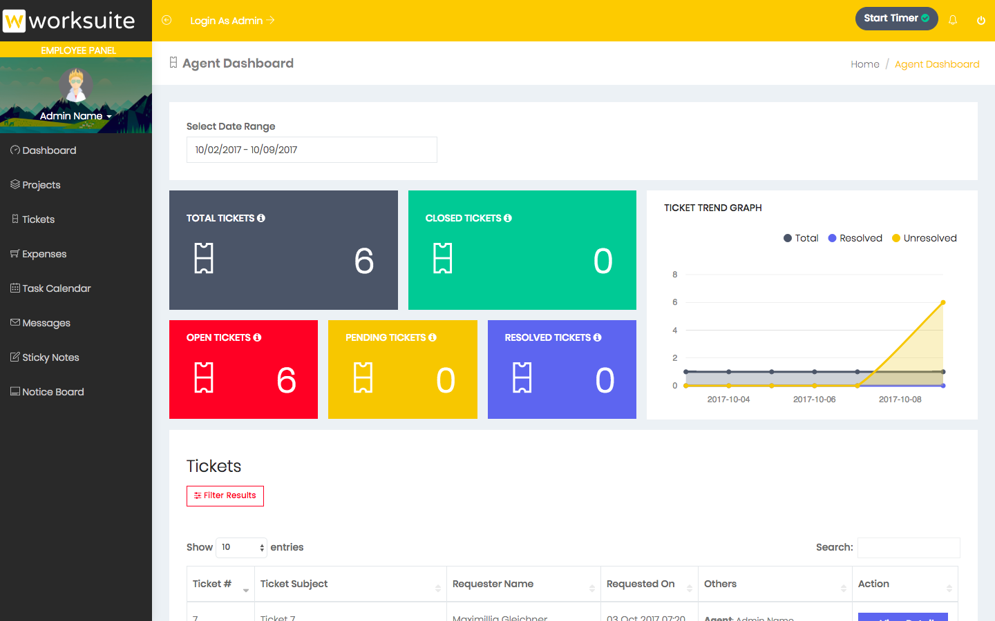 View tickets assigned to employees.